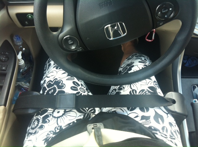 You can also use Alignment Wedges in a variety of ways outside of driving – wherever you are sitting that has a surface you can use to hold them. Below are pictures of some ways that I used them while sitting at a training for long hours that helped prevent my legs from cramping.